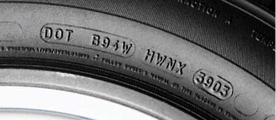 Le DOT (Department of Transportation) du pneumatique correspond à sa date de production. Il est composé de 4 chiffres indiquant la semaine de fabrication et l’année.