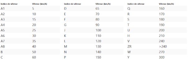 Indice de vitesse :